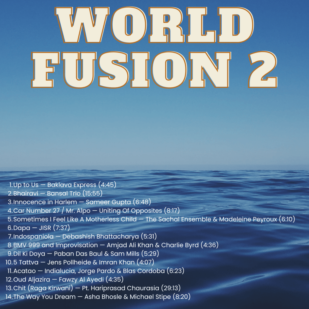 I may post a bit along the way but look forward to having your good wishes as I depart. As a small gift here is a mixtape of World Fusion which just so happens to be heavily colonised by South Asian sounds.